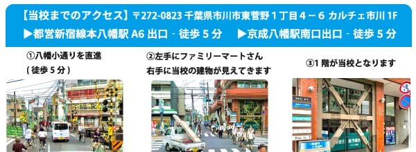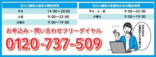 東進 市川八幡校は、東進衛星予備校(約1000校舎)、東進ハイスクール(約100校舎)、早稲田塾(12校舎)、東大特進(3校舎)の全国約1100校以上ある東進グループの中の一員です。