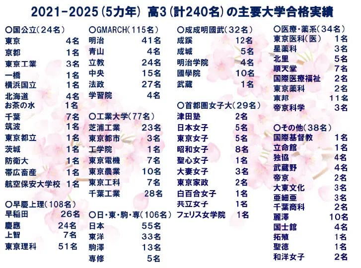 2021年―2025年の5年間の240名の実績です!(入学テストは実施していません)