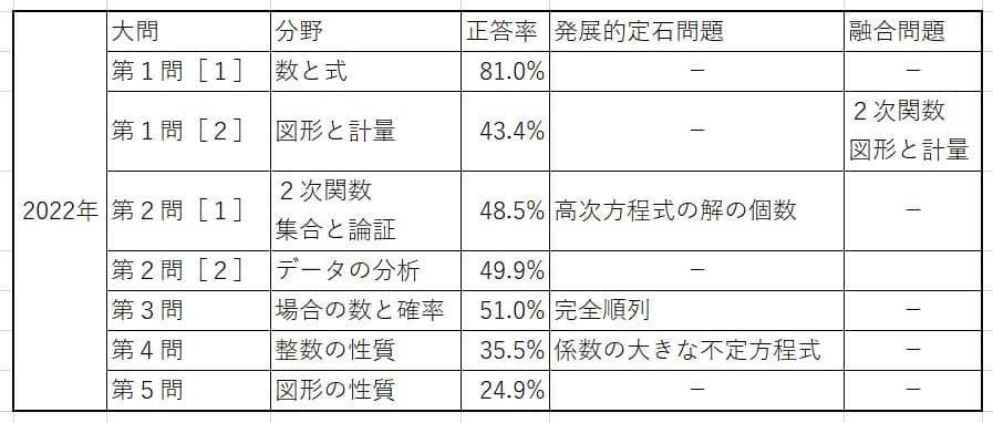 ここで2022年の難化した数学の出題傾向について分析してみたいと思います。